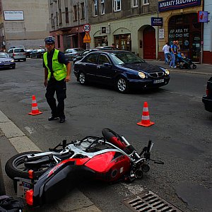 W poniedziałkowe popołudnie kierowca samochodu osobowego marki Ford uderzył w jadącego ulicą Jaworzyńską motocyklistę. Mężczyzna trafił do legnickiego szpitala.