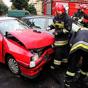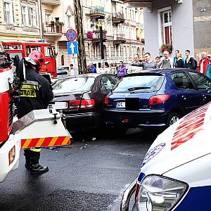 Seat Cordoba i Renault Laguna zderzyły się na skrzyżowaniu ulic Franklina Roosvelta i Waleriana Łukasińskiego. Kierowcy obydwu samochodów odnieśli obrażenia i trafili do legnickiego szpitala.