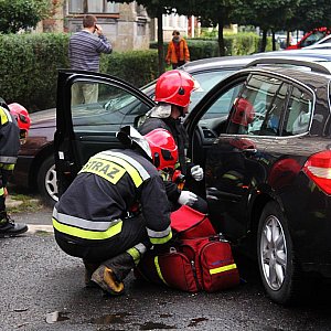 Na miejscu są strażacy, którzy zneutralizowali sorbentem wyciekające paliwo i odłączyli akumulatory w obydwu samochodach. Policja prowadzi czynności, które wyjaśnią jaka była rzeczywista przyczyna wypadku.