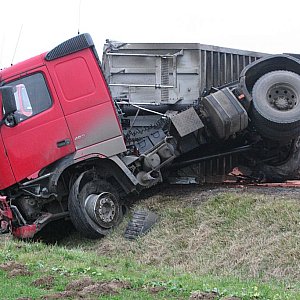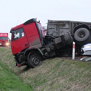 Siła uderzenia była na tyle mocna, że samochód stoczył się do rowu. Jadący za nim kierowca "osobówki" nie wyhamował i uderzył w ciężarówkę. Na szczęście nikomu nic się nie stało.