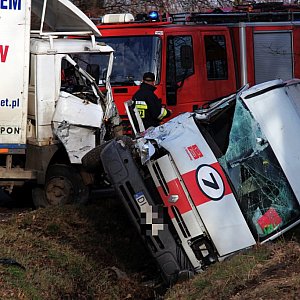 W wyniku zderzenia czołowego dwóch samochodów na krajowej trójce dwie osoby doznały obrażeń i odwiezione zostały do szpitala.