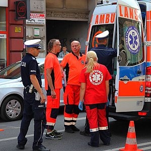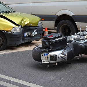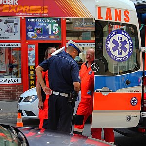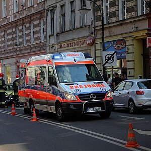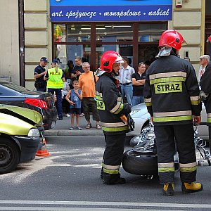 Zderzenie czołowe samochodu osobowego z motocyklem na ulicy Wrocławskiej. Motocyklista został odwieziony do szpitala.