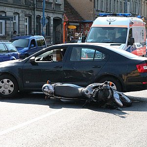 Do wypadku doszło w piątek po godzinie 15 na skrzyżowaniu ulicy Wrocławskiej z aleją Ofiar Ludobójstwa OUN-UPA. Do szpitala odwieziony został motocyklista.