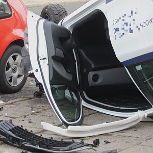Dwie osoby, ktore doznały lekkich obrazeń przewiezione zostały do szpitala. Policja ustala przyczyny wypadku.