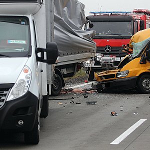 Jedna osoba została lekko ranna w wyniku zderzenia trzech busów na 87 kilometrze autostrady A4. Ruch na trasie jest chwilowo utrudniony.
