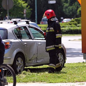 Do wypadku doszło na skrzyżowaniu ulic Skarbka i Gwarnej. Ucierpiała w nim jedna osoba, kierowca samochodu marki Honda.
