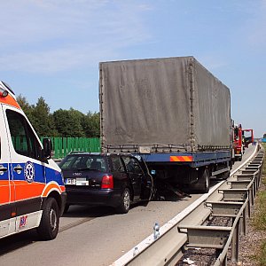 Do groźnego wypadku doszło w czwartek ok. godz. 14 na podlegnickim odcinku autostrady. Samochód osobowy audi zderzył się z ciężarówką.