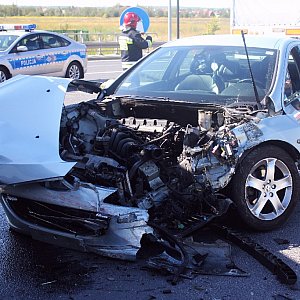 Uderzenie było tak silne, że z silnika samochodu osobowego nie zostało prawie nic, a akumulator "wyleciał" kilkanaście metrów dalej. W promieniu kilkunastu metrów rozlał się płyn z uszkodzonego samochodu. Uczestnicy zdarzenia byli trzeźwi. Wyciek szkodliwej substancji usuwają powołane do tego służby.