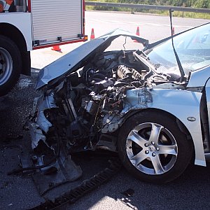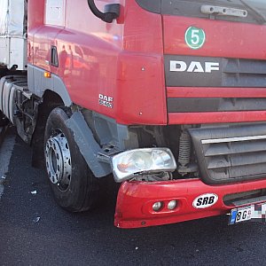 Kierujący tirem nie chcąc uderzyć w bok samochodu próbował”uciec”, niestety, manewr, który wykonał spowodował, że ciężarówka uderzyła w peugeota prawym błotnikiem, następnie przejechała przez pas zieleni i zatrzymała się przednimi kołami na przeciwległym pasie ruchu.