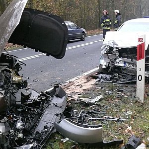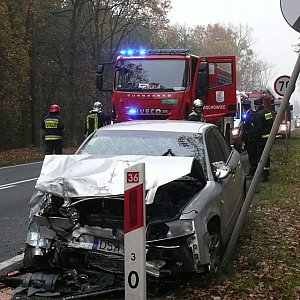 Do wypadku doszło na 3 kilometrze drogi krajowej 36. Sprawczyni, 65 – letnia mieszkanka Świebodzic jadąca audi z niewyjaśnionych przyczyn zjechała nagle na przeciwległy pas ruchu, uderzyła w bok przejeżdżającej toyoty, która dachowała w rowie. Audi odbiło się od toyoty i zderzyła czołowo z volkswagenem touranem. Małżeństwo jadące volkswagenem odniosło na tyle poważne obrażenia, że trafiło do legnickiego szpitala. Lekkie obrażenia odniosły osoby jadące toyotą. Sprawczyni wypadku nic się nie stało.
