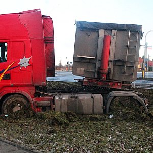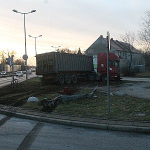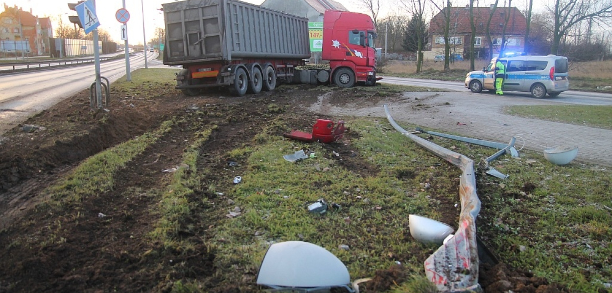 Kierowca samochodu ciężarowego nie dostosował prędkości do trudnych warunków, wypadł z drogi i "ściął" latarnię na legnickiej obwodnicy. Na szczęście nikomu nic się nie stało.