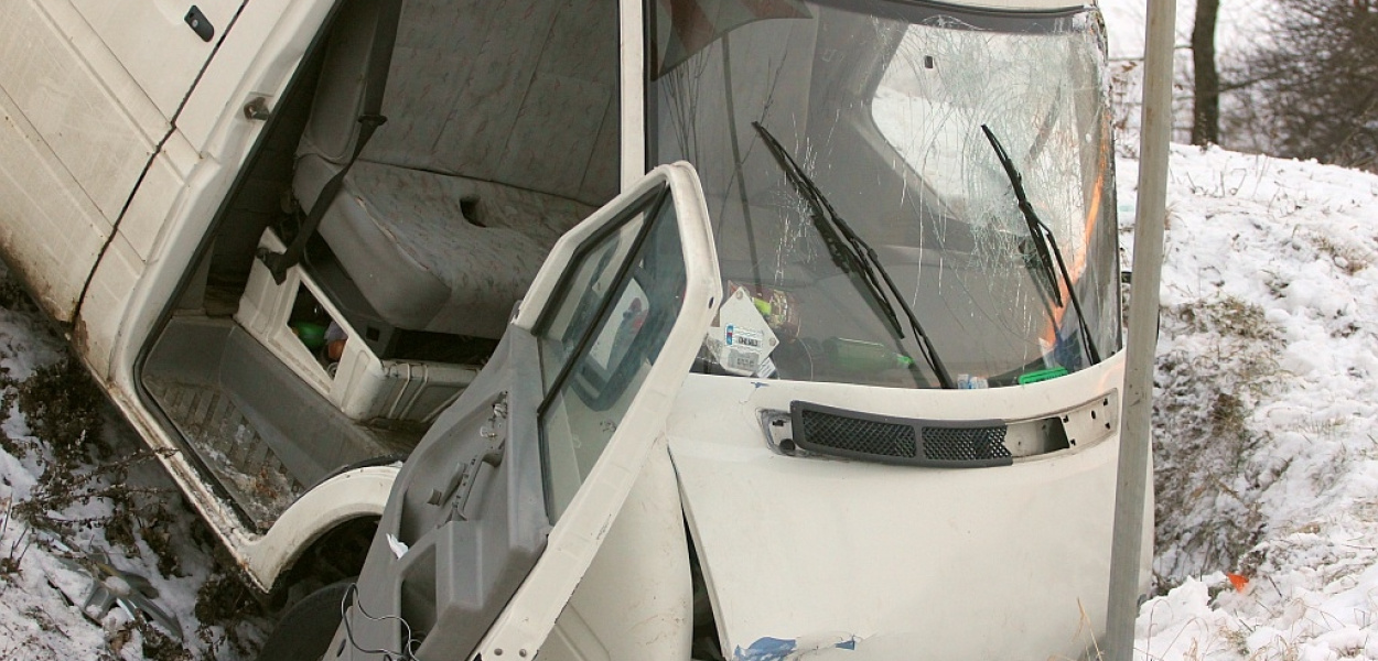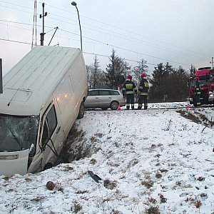 Trzy osoby doznały obrażeń podczas wypadku, do którego doszło w sobotę nad ranem. Kierowca busa wypadł z drogi na zakręcie i wjechał prosto do rowu.