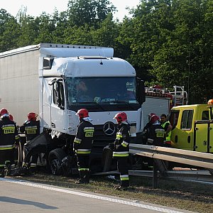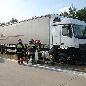 Dwa samochody ciężarowe zderzyły się na 88 kilometrze autostrady A4. Jedna osoba została ranna. Ruch na autostradzie jest utrudniony w obydwie strony. W każdą czynny jest tylko jeden pas ruchu.