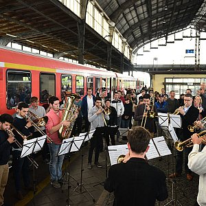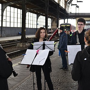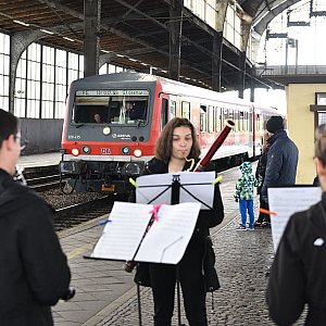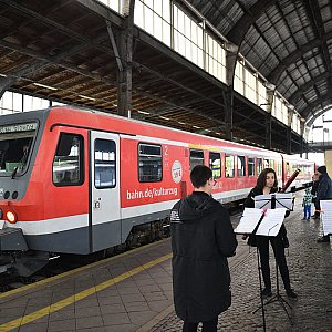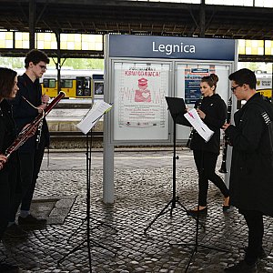Programem artystycznym „Sztorm, marsz, galop” Benjamina Bilsego uczniowie Zespołu Szkół Muzycznych powitali na legnickim dworcu PKP „Pociąg do Kultury”.