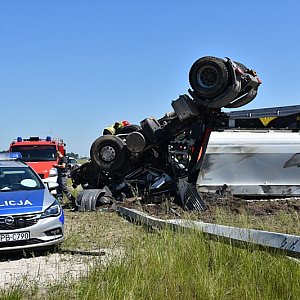 Do zdarzenia doszło w poniedziałek ok. godziny 10 na drodze ekspresowej S3. Pomiędzy Legnicą a Lubinem, na wysokości Gorzelina. Kierowca ciężarówki stracił panowanie nad pojazdem, uderzył w bariery energochłonne i dachował.