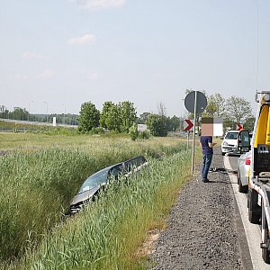 Ta skoda to jest ten samochód w rowie z napisem na klapie TOYOTA czy może to jest ten czarny z logo na kole Alfy Romeo, nie mówiąc już o tym, że na pierwszy rzut oka widać, że to Alfa ???