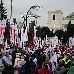 W Warszawie NSZZ "Solidarność" pikietował przeciw odebraniu emerytur pomostowych. Region Zagłębie Miedziowe reprezentowało blisko 100 związkowców.