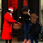 Dyrekcje szkół oraz nauczyciele wcielili się w postacie świętych mikołajów i rozdawali uczniom cukierki.