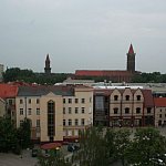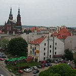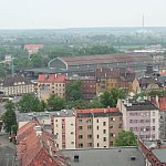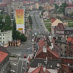 Zdjęcia Legnicy z wieży kościaoła NMP oraz z drabiny strażackeij postawionej na palcu po byłym browarze