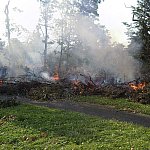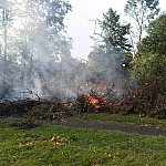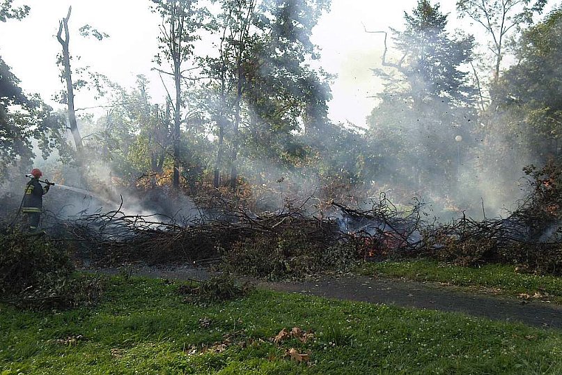 Podpalenie gałęzi, które leżały w parku obok bocznego boiska! Tylko dzięki szybkiej interwencji straży pożarnej nie doszło do rozprzestrzenienia się ognia.