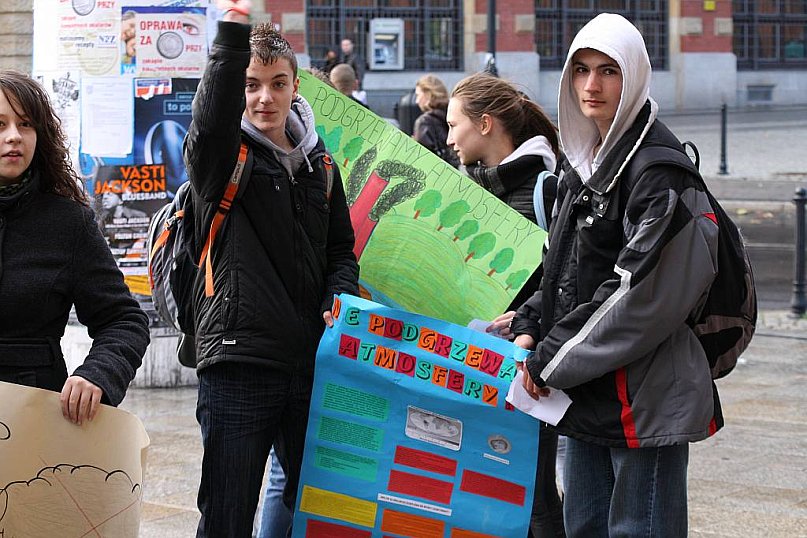 Kilkudziesięciu uczniów Gimnazjum nr 4 przymaszerowało ze szkoły pod Urząd Miasta. Młodzi ludzie przekazali Tadeuszowi Krzakowskiemu petycję.