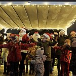 Mikołaj odwiedził dzieci ze żłobka i przedszkola z Akademii Młodego Artysty. Mimo niepogody było radośnie, była była muzyka światełka oraz zabawy taneczne.