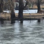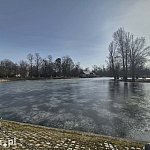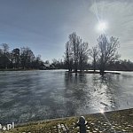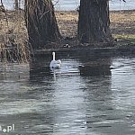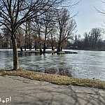 Wenecja w Parku Miejskim wciąż w dużej części pozostaje skuta lodem, ale życie na stawie zaczyna się odradzać po zimowym uśpieniu. Pojawia się więcej spacerowiczów, a w rozmarzniętych fragmentach widać wyraźną ptasią aktywność, przede wszystkim jednego nowego gościa, który zdaje się wyczuwać, że wiosna jest coraz bliżej.