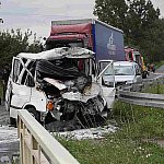 Na ulicy Pątnowskiej na wysokości mostu na rzece Kaczawie dziś rano doszło do zderzenia czołowego dwóch aut. Jedna osoba nie żyje, cztery ciężko ranne.