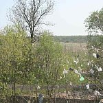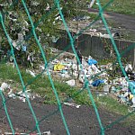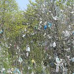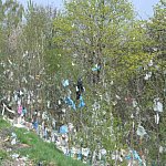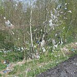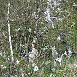 Podczas silniejszych podmuchów wiatru lekkie śmieci wydostają się poza teren wysypiska i zatrzymują się na okolicznych drzewach i łąkach.