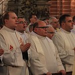 w Katedrze Legnickiej odprawiona została uroczysta msza św. Krzyżma pod przewodnictwem biskupa legnickiego, koncelebrowana przez kapłanów.