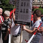 Kilkunastu członków i sympatyków PiS protestowało w czwartek pod legnickim biurem poselskim PO. Jego pracownikom wręczyli apel o wycofanie się z reformy emerytalnej.