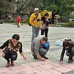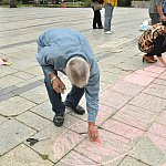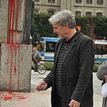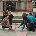 Punktualnie o godzinie 12 rozpoczął się pod pomnikiem na Pl. Słowiańskim happening, przygotowany przez Galerię Sztuki. Uczestnicy odrysowali cień najbardziej kontrowersyjnego legnickiego pomnika. Akcja odbyła się w 20. rocznicę wycofania wojsk Armii Radzieckiej z naszego miasta.