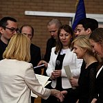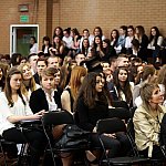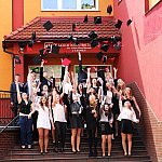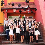 Absolwentów V Liceum żegnała dyrekcja szkoły, nauczyciele i młodsi koledzy. To wzruszająca uroczystość dla kończących naukę.