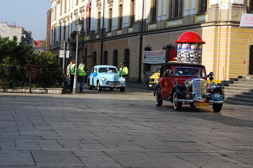 Na legnicki rynek zjechało dziś ponad 70 zabytkowych pojazdów biorących udział w siódmym rajdzie pojazdów zabytkowych Legniczanie z zaciekawieniem podziwiali "cudeńka"