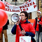 Ponad dwudziestu wolontariuszy Szlachetnej Paczki zachęcało legniczan do tego żeby wzięli udział w projekcie i pomogli robieniu paczek świątecznych dla najbardziej potrzebujących.