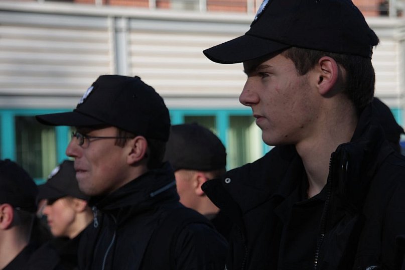 Ćwiczenia legnickiej policji na stadionie przy Orła Białego