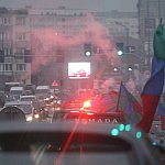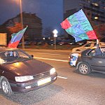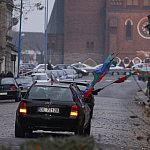 Piłkarze i kibice Miedzi Legnica wzięli udział w samochodowym objeździe miasta, który promował jutrzejsze spotkanie Miedzi Legnica z Chrobrym Głogów.