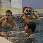 Międzynarodowy Halowy Turniej Mikołajkowy w Piłce Nożnej - dzieci na basenie Delfinek.