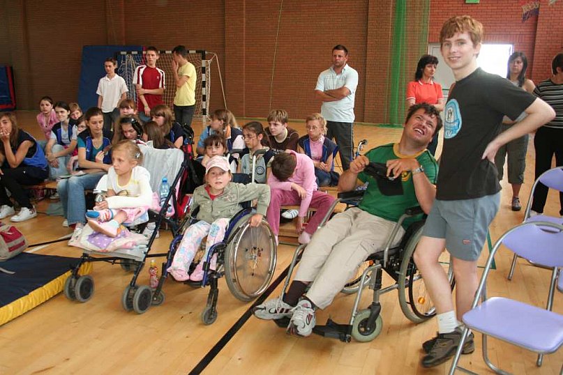 Drużyna Startu Wrocław i Simetu Jelenia Góra rozegrały pokazowy mecz siatkówki siedząc w ramach Dni Integracji w ZSI.