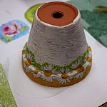 Doniczki, flakony i ramki nabierały efektownego wyglądu pod sprawnymi rękami uczestników warsztatów decoupage, które odbyły się w ramach twórczych sobót z Galerią Sztuki.