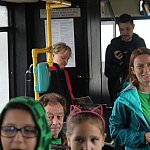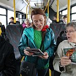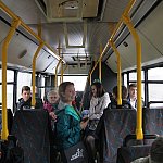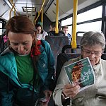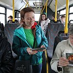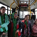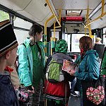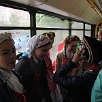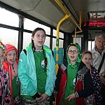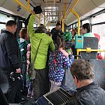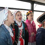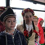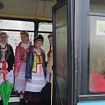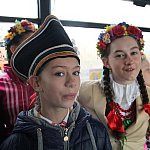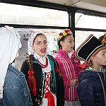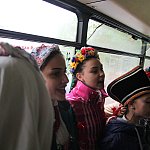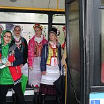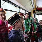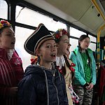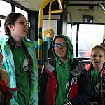 W śpiewających autobusach zaprezentowali się młodzi członkowie Zespołu Pieśni i Tańca "Legnica".