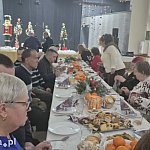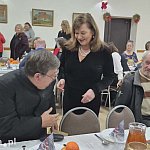 Przy wspólnym wigilijnym stole zasiedli mieszkańcy razem z burmistrz Alicją Sielicką, księdzem proboszczem oraz przedstawicielami samorządu i instytucji samorządowych. Był to czas serdecznych rozmów, życzliwości i wzruszeń. Zgodnie z tradycją Świąt Bożego Narodzenia uczestnicy podzielili się opłatkiem, złożyli sobie życzenia, a następnie wspólnie zasiedli do wigilijnego posiłku, który podkreślił wspólnotowy charakter tego spotkania. Najbardziej potrzebujący otrzymali paczki.