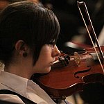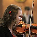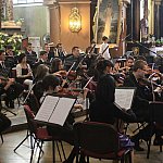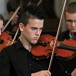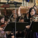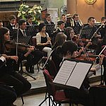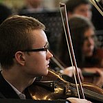 Uroczysty koncert solistów i orkiestry z okazji zakończenia roku szkolnego w wykonaniu uczniów szkoły muzycznej.