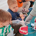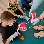 Grupa „Sówki” zamieniła się w małych ekspertów od higieny, a wszystko dzięki wyjątkowej lekcji z Centrum Stomatologicznym Myrka! Było szczotkowanie na medal, ważne rady i... super prezenty, które wywołały masę radości. Zobaczcie, jak nasi najmłodsi dbają o zdrowe uśmiechy!