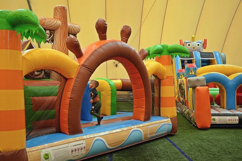 W Football Arena przy ul. Hangarowej zabawa trwa w najlepsze, a sobota jest pierwszym dniem dmuchańcowego szaleństwa. Od samego początku widać, że to trafiony pomysł na weekend, bo dzieci szybko zajęły wszystkie dmuchańce i tory przeszkód, a wokół co chwilę słychać śmiech i nawoływania do wspólnej zabawy.