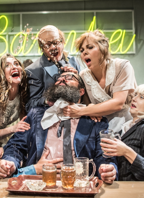 Surrealistyczna czeska biesiada rodem ze świata Hrabala i Haška w samym sercu Pragi. W sali bankietowej Zakładu Weselno-Pogrzebowego Pana Bamby stypa miesza się z weselem, a z pozoru niewinna zabawa zamienia się w teatralną jazdę bez trzymanki. W równie zabawnym, co śmiertelnie poważnym przedstawieniu śmiech przeplata się z refleksją, a wszystko to w rytm znakomitych songów do muzyki granej na żywo przez kapelę Łukasza Matuszyka.