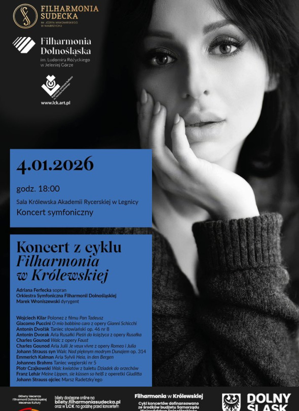 Podczas koncertu zagra dla Was Orkiestra Symfoniczna Filharmonii Dolnośląskiej, którą pokieruje dyrygent Marek Wroniszewski. Towarzyszyć im będzie sopranistka Adriana Ferfecka.