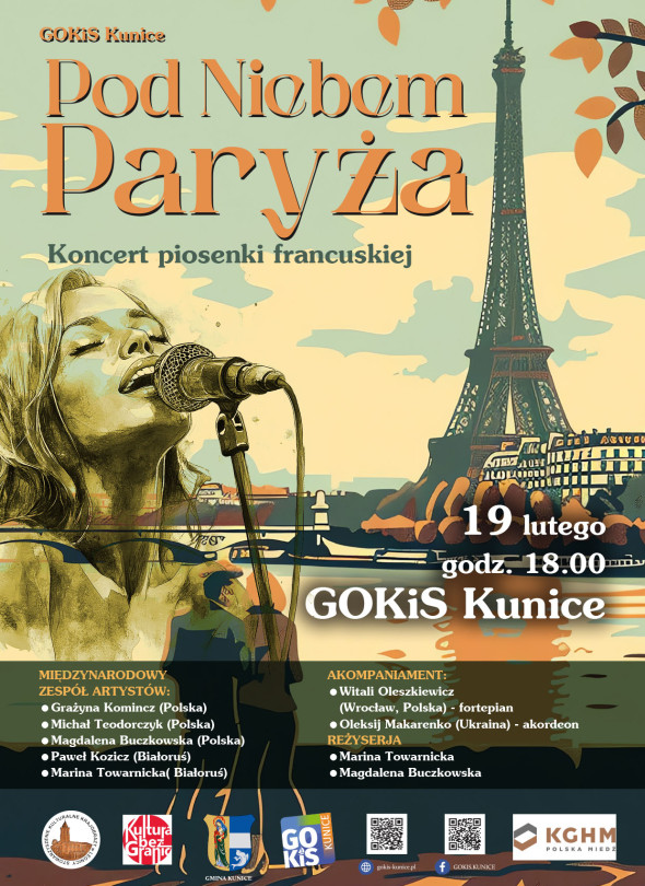 Koncert realizowany jest dzięki wsparciu i współpracy partnerów: KGHM Polska Miedź, Gminy Kunice oraz stowarzyszeń kulturalnych: „Krajobrazy” oraz „Kultura bez Granic”. Wstęp na wydarzenie jest bezpłatnym zaproszeniem do wspólnego celebrowania święta miłości w rytmie najpiękniejszych utworów znad Sekwany.