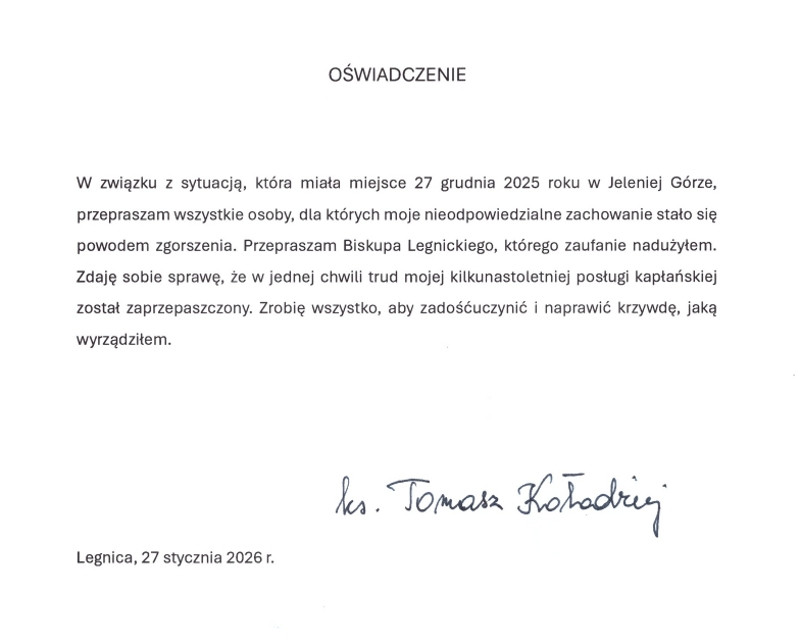 Oświadczenie ks. Tomasza Kołodzieja