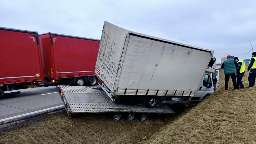 Jak informowało Dolnośląskie Alarmowo, kierujący autolawetą z przyczepą, na której przewożony był pojazd dostawczy, zjechał z jezdni i wpadł do rowu. Do zdarzenia doszło na pasie w kierunku Wrocławia, tuż przed węzłem Wądroże Wielkie.